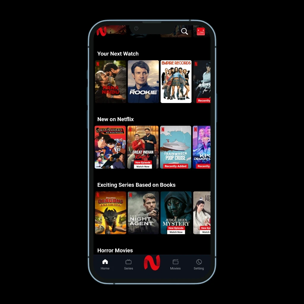 Once you open NetMirror APK, you land on the Home screen. Here you’ll see: